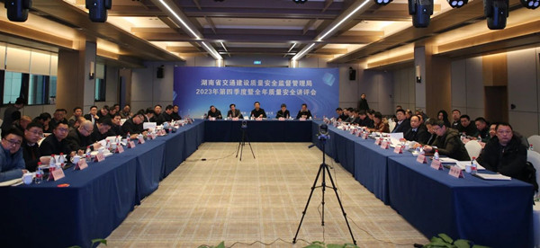 会议传达学习了李小鹏部长在交通运输部2024年部安委会第一次全体会议暨交通运输安全生产视频会议上的讲话;观看了2023年第四季度质量安全检查专题片;宣读了2023年度高速公路与重点水运工程质量安全监管分析报告;通报了2023年第四季度安全生产及设备设施、监理检测、水运项目、农民工工资和安全专项经费、负变更和施工方案执行及智慧质监运行、质量状况和总体检查情况等;表彰了2023年度“平安工地”考核先进单位、湖南省交通建设监理检测行业先进单位、优秀监理机构、工地试验室,优秀监理工程师、检测工程师。