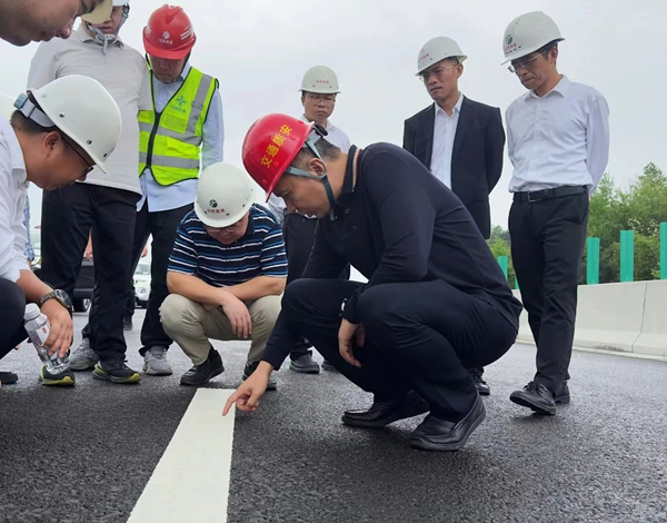 调研组一行实地察看了舒溪口枢纽互通、辰溪沅水特大桥、辰溪北服务区几处关键节点。“标线的逆反射系数是多少?”“超高段的排水效果怎么样?”“服务区的细节管理怎么样?”每到一处,虢柱都详细询问了施工现场的质量安全管控情况,针对施工过程中可能出现的风险点,仔细了解原因,并与业主和各参建单位研究讨论,提出解决办法。虢柱强调,各参建单位一定要提高认识,加强施工现场管理,落实人员责任,在保证工程质量安全的前提下,加快工程建设进度,顺利完成通车目标任务。