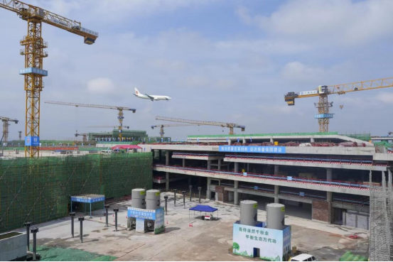 (长沙黄花机场综合客运枢纽建设现场,交通中心(GTC)主体结构已完成。
