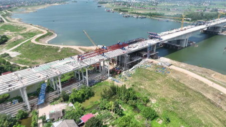 夏日炎炎,建设正酣。8月6日,随着资水特大桥主桥第四跨最后一片箱梁精准落位,该项目梁板架设任务圆满完成,益常高速扩容项目第一合同段全线桥梁顺利贯通。