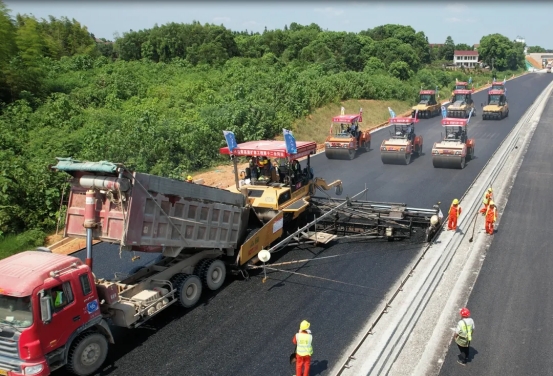 近日,益常高速扩容工程第十二合同段顺利完成首段沥青中面层试验路摊铺,标志着路面施工进入提速赶超阶段。