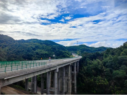 “水底有龙掀巨浪,岸旁无雨挂长虹。暴雨过后,官新高速如一条长龙俯卧在群山环绕、漫江碧透的山水间,让人充分领略到现代工程与自然山水的完美交融。”这是官新高速通车半年多后带给人们的最大感受……