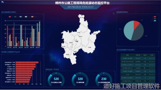 为了更好展示各管辖项目安全生产状况,了解各地市项目进展和整体安全形势,系统提供一套安全生产信息可视化平台,实时显示施工现场的视频监控、特种设备运行情况、安全检查及整改回复统计、风险源台账及销号等关键性信息,更有效的为监管层数据全面掌控提供便利。