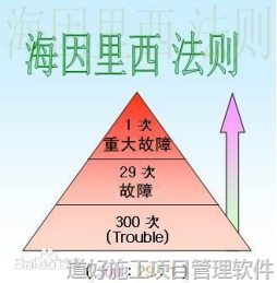 当一个企业有300起隐患或违章,非常可能要发生29起轻伤或故障,另外还有一起重伤、死亡事故。这个统计规律说明了在进行同一项活动中,无数次意外事件,必然导致重大伤亡事故的发生。要防止重大事故的发生必须减少和消除无伤害事故,要重视事故的苗头和未遂事故,否则终会酿成大祸。也就是说重大事故是可以防止的,而不是靠运气!