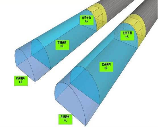工人分布查询:对隧道各区域的施工人员分布情况进行查询,使管理人员可以方便的知道特定区域的工作人数。点击相应区域可获得相关人员详细信息。