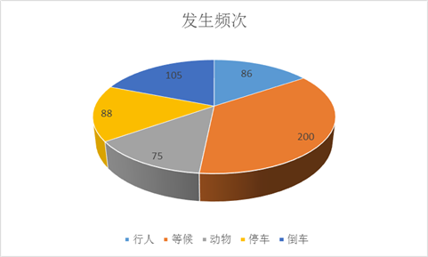 系统对某一时间段内(默认一年)的行人、等候、动物、停车、倒车等行为进行统计分析,并按发生频率画圆饼图,为管理者决策提供参考。