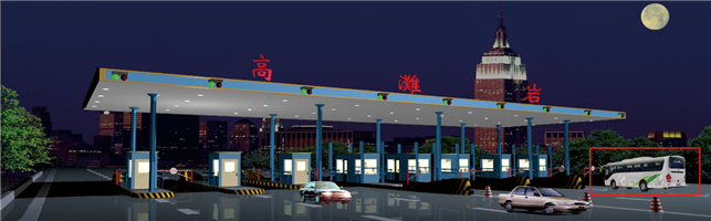 系统对凌晨2:00至5:00欲驶入高速公路或在高速公路范围内行驶的大中型客车进行识别报警,并以短信形式通知相关干系人,如:“3:10发现有大中型客车欲在高滩岩收费站驶入高速公路,请相关人员及时处理。”“3:30发现K342+100附近有大中型客车行驶,请相关人员及时处理”。